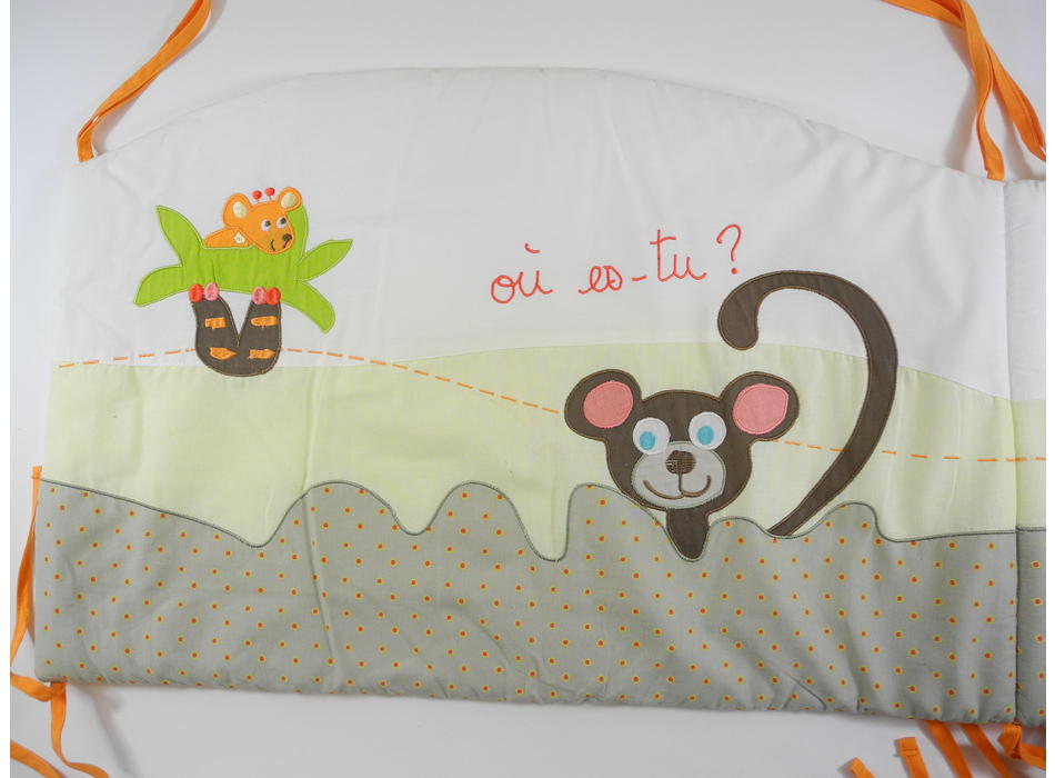 Customisez votre lit et obtenez une décoration unique ! Il évite de se cogner ou de se coincer entre les barreaux en bois. Ils se nouent au lit au moyen de lien fixés sur chaque extrémité. Extension de la garantie à 4 ans pour le lit de votre bébé ! Tour de lit bébé sur le thème de la savane/jungle.